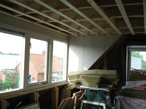 Groningen, aug. 2017 - Zolder appartement vandaag opgeleverd; kamer met open keuken, slaapkamer, badkamer met douche & w.c. en laminaatvloer.